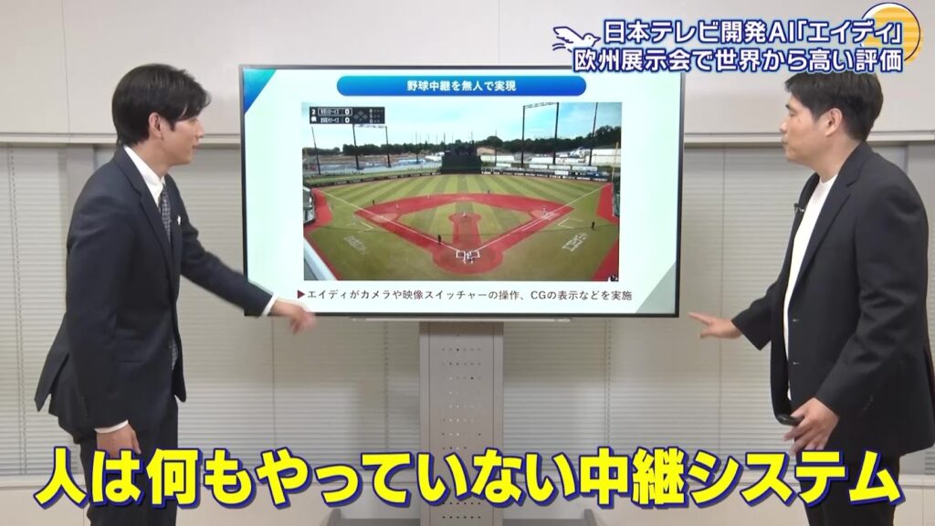 - 最後に、エイディを応用した「AI野球カメラ」による試合映像のライブ配信(GIANTS TV)の様子が紹介されました。